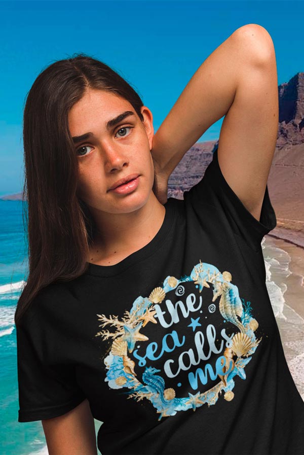 Camiseta para mujer serigrafiada con original diseño de «The Sea Calls me».