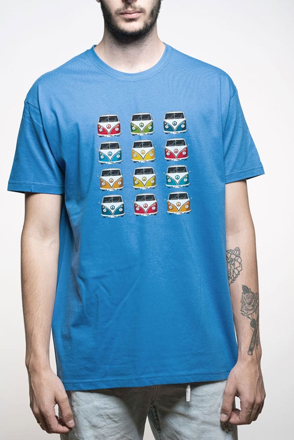 Camiseta para hombre serigrafiada con furgonetas volkswagen en colores.