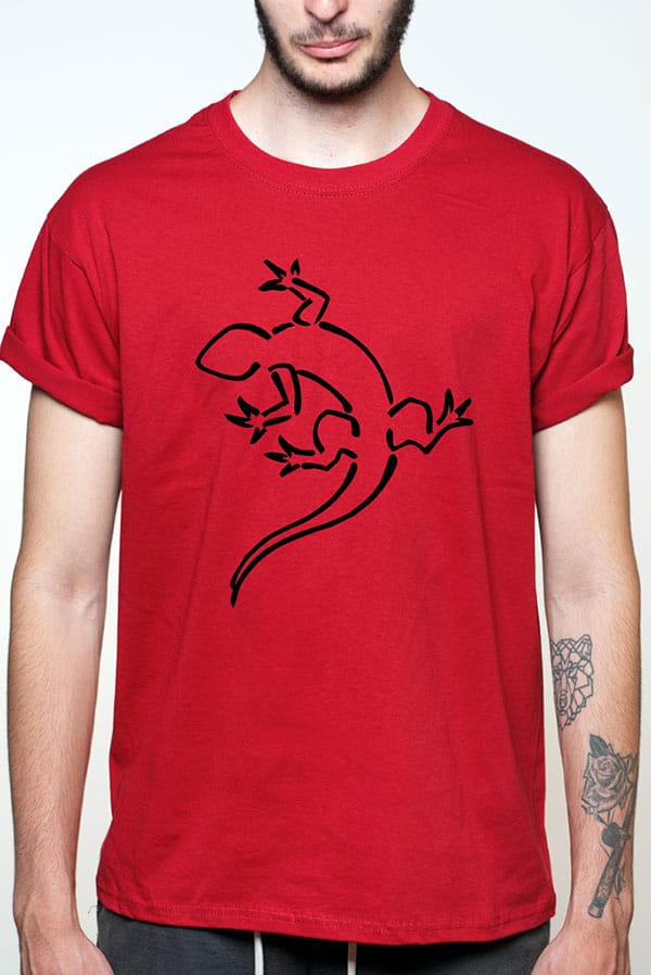 Camiseta para hombre serigrafiada con un diseño singular de contorno de lagarto.