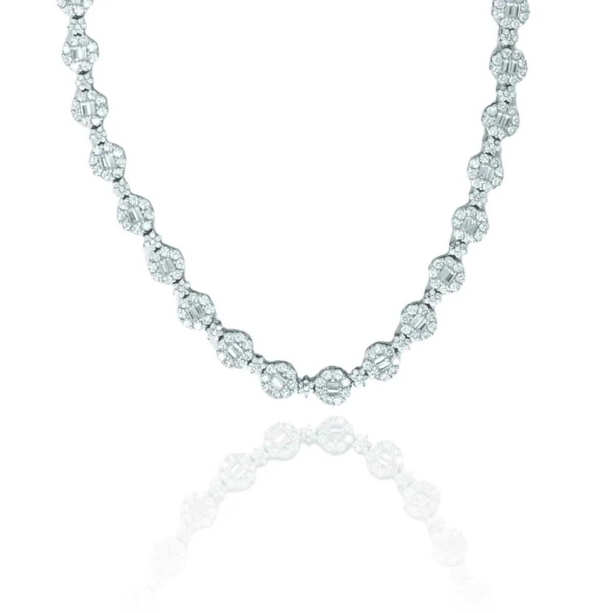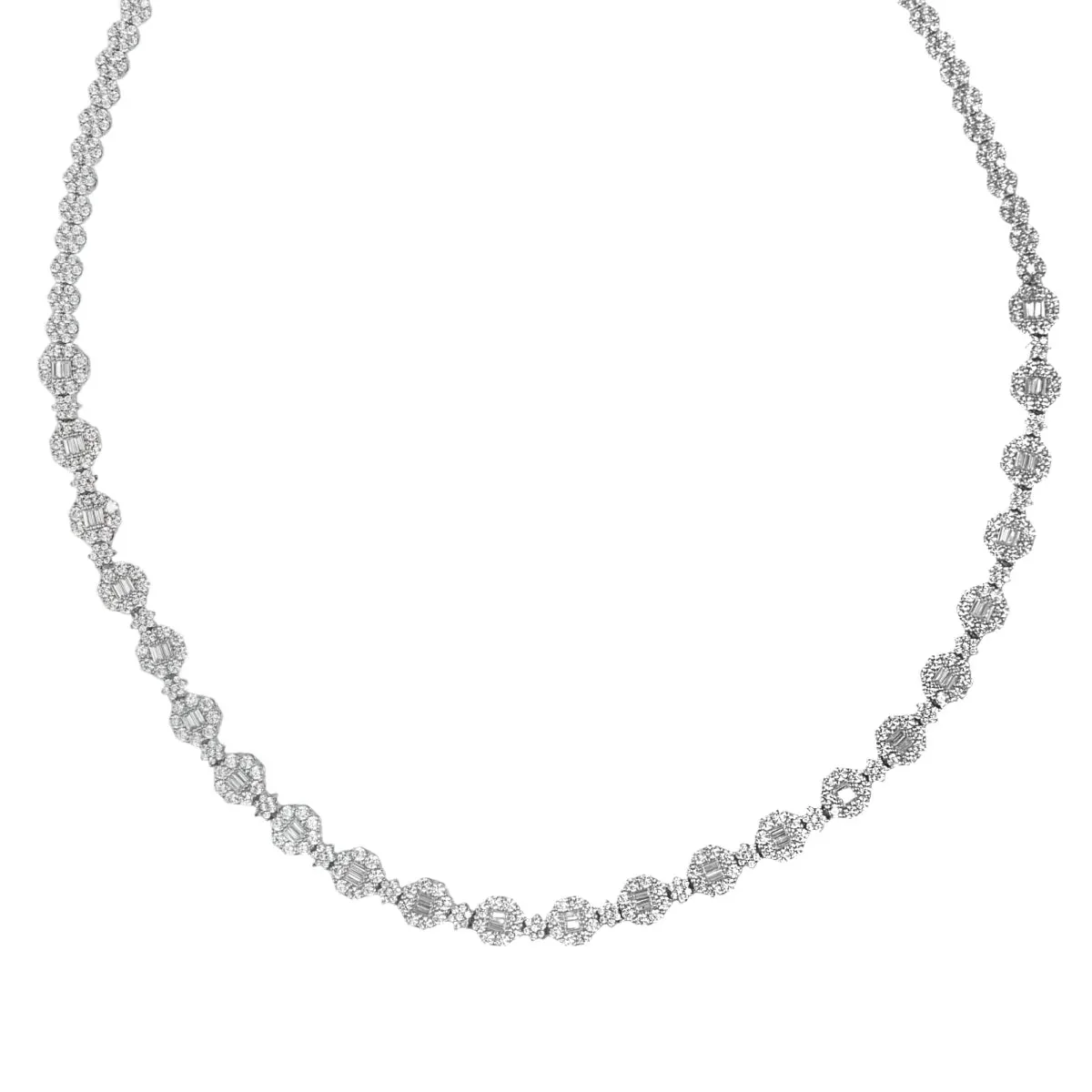 Gargantilla en plata con rosetas en circonitas talla baguette engaste invisible, cierre oculto lengüeta de seguridad