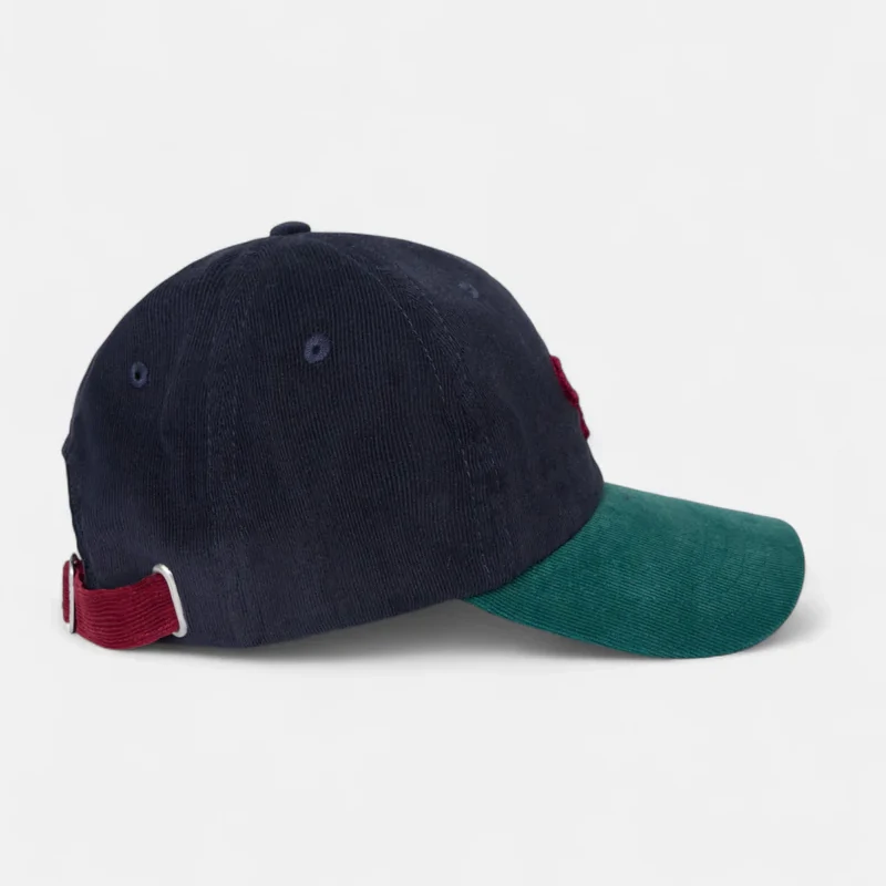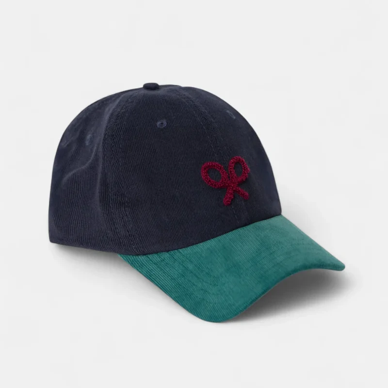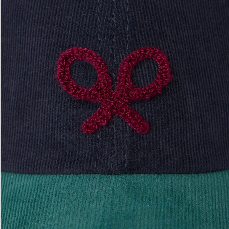 Gorra de kids de pana bicolor confeccionada en 100% algodón. Presenta bordado de raquetas color burdeos en la corona. Cuenta con ajustable y etiqueta personalizada trasera