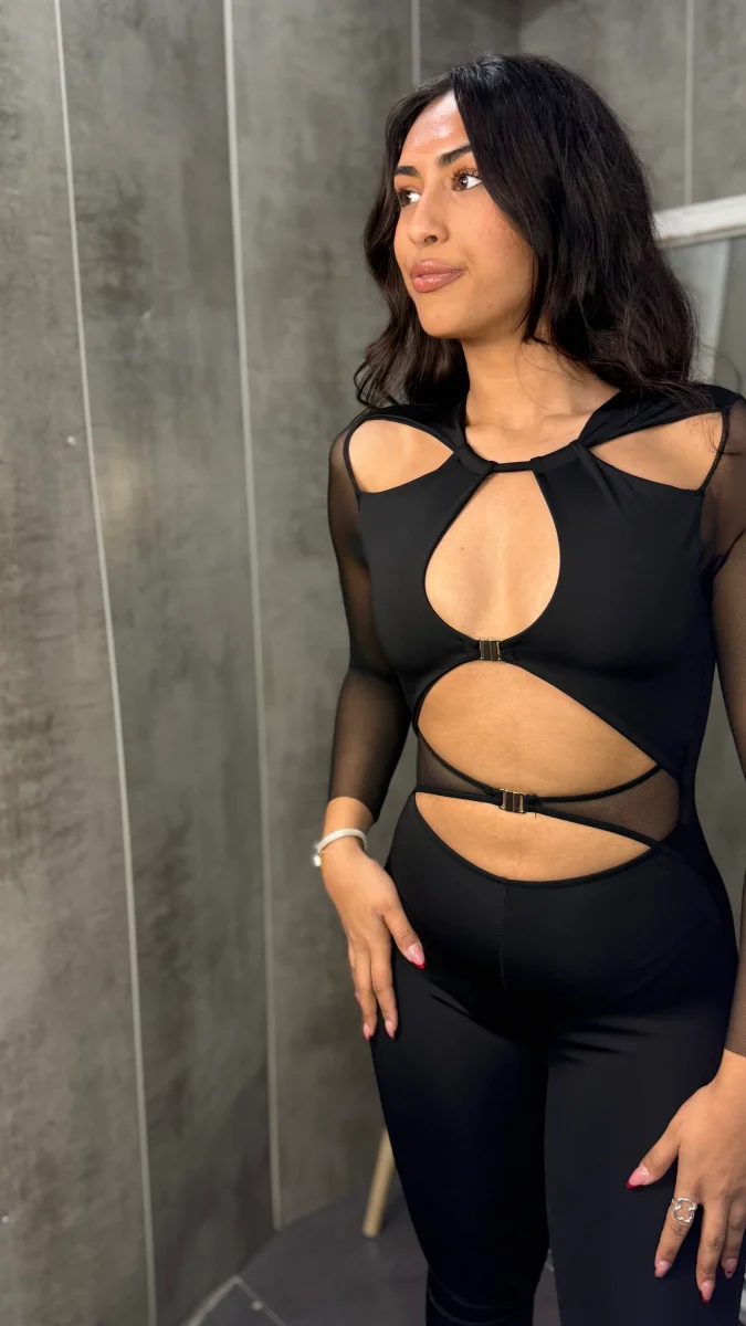 Mono con mangas transparentes y en la parte delantera con transparencias