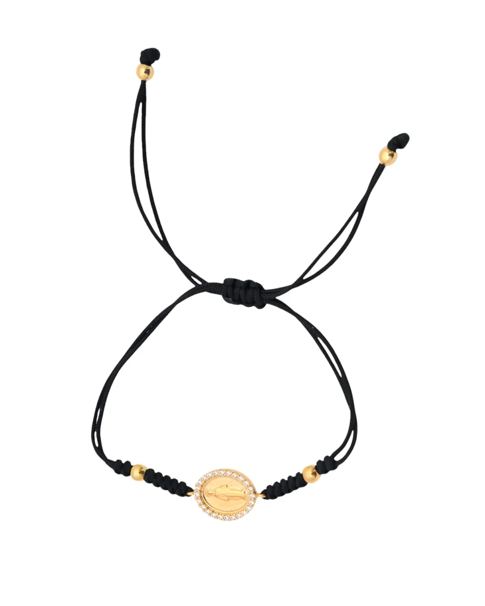 | Pulsera cordon con Virgen de la Milagrosa en plata con baño de oro con orla de circonitas |